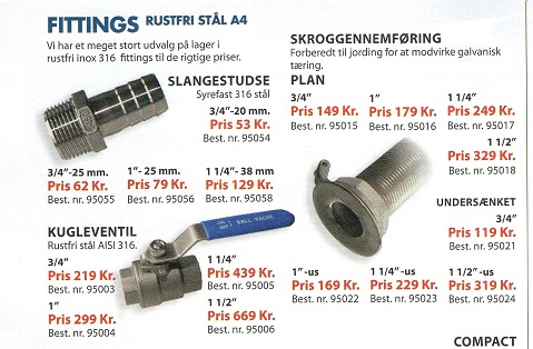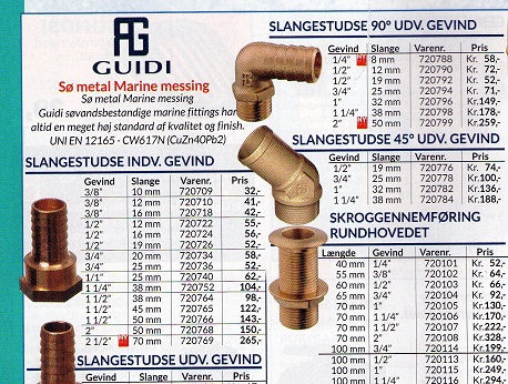Nedenfor er vist sider fra katalogerne fra 2015 fra følgende: Hellers, Nautisk Udstyr og Marineworld, men andre sælgere har det samme i deres kataloger.